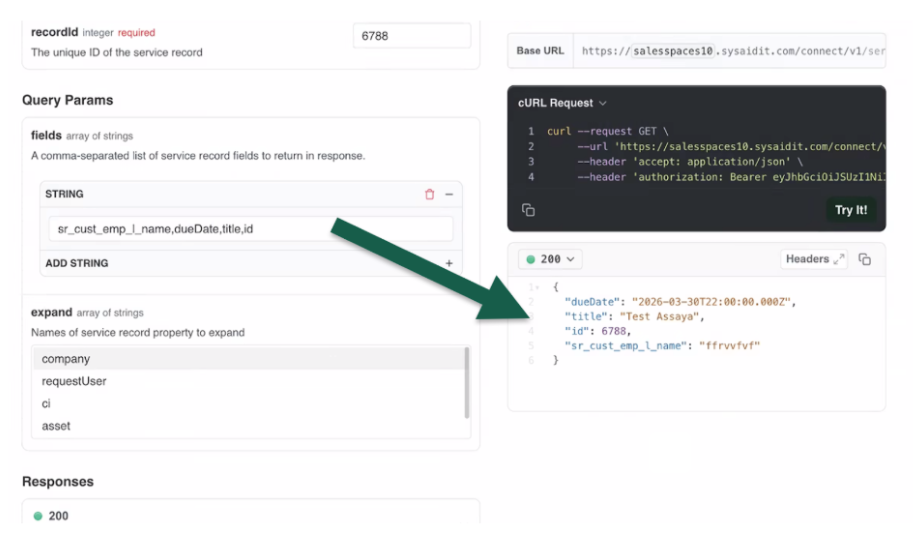 Custom fields associated with service records can appear in the response when retrieving a service record using the Get a Service Record by ID endpoint.